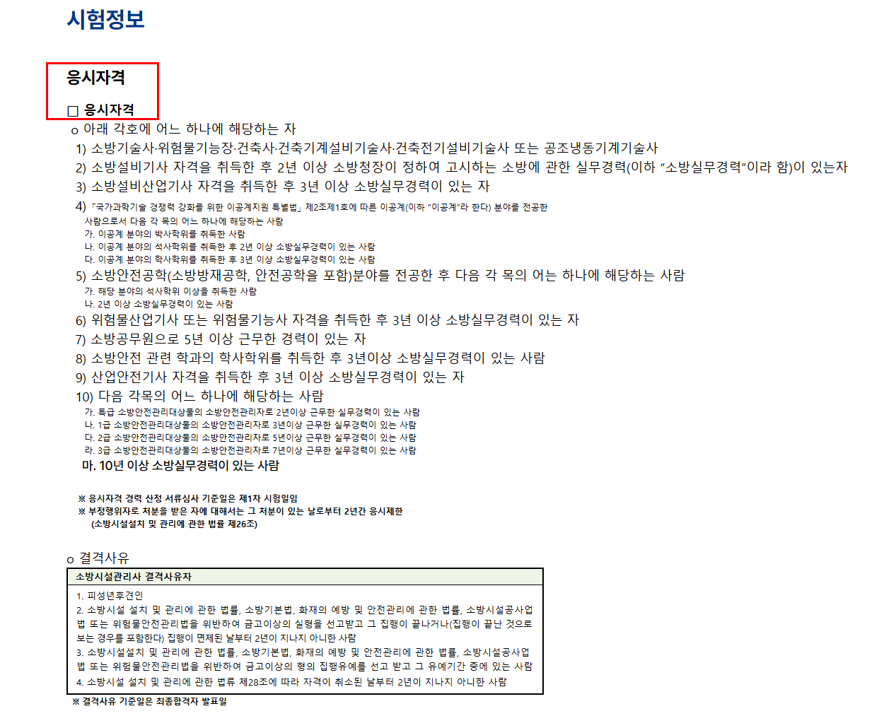 - 법에서 정한 소방 분야 실무 경력 충족