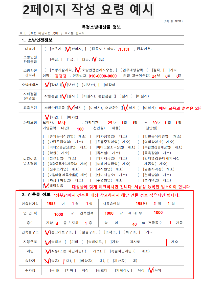 이후 3페이지부터는 실제 소방시설 점검 결과를 기록하게 됩니다. 크게 어려운 것이 없습니다.