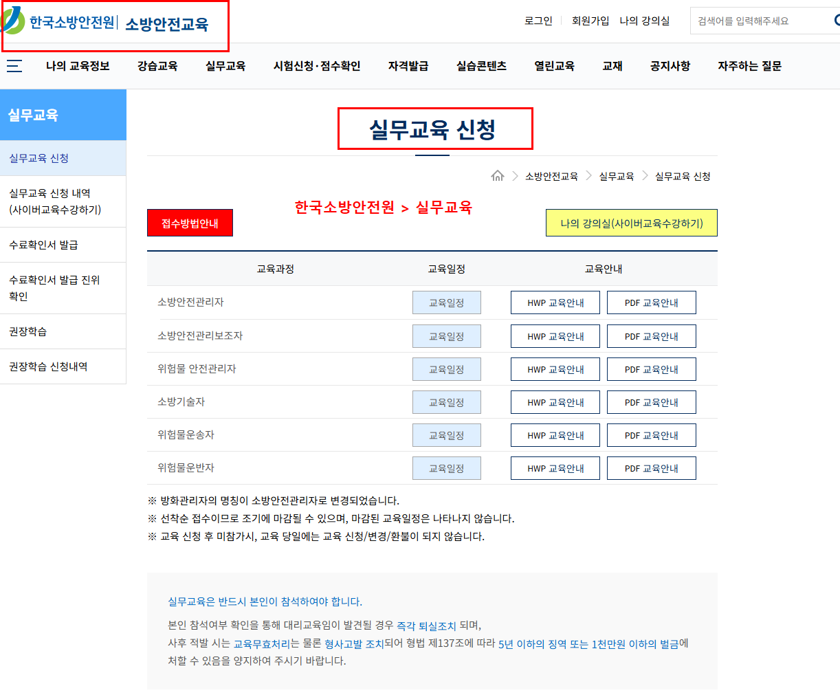 한국소방안전원 실무교육이란?